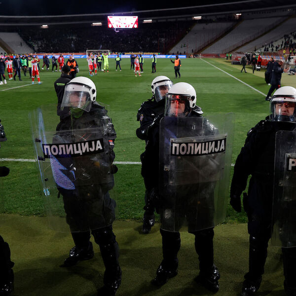 Na jugu su bacane dimne bombe, gorele su stolice, pa je Teo konstatovao da bi utakmica morala da bude prekinuta.
