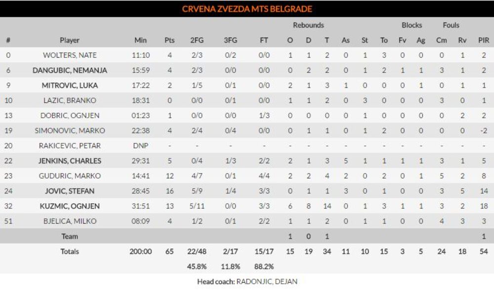 Šut za dva poena i nije bio toliko loš (46 posto), ali zato trojke... 2-17!!! Jović i Kuzmić su bili najefikasniji sa 16, odnosno 13 poena.