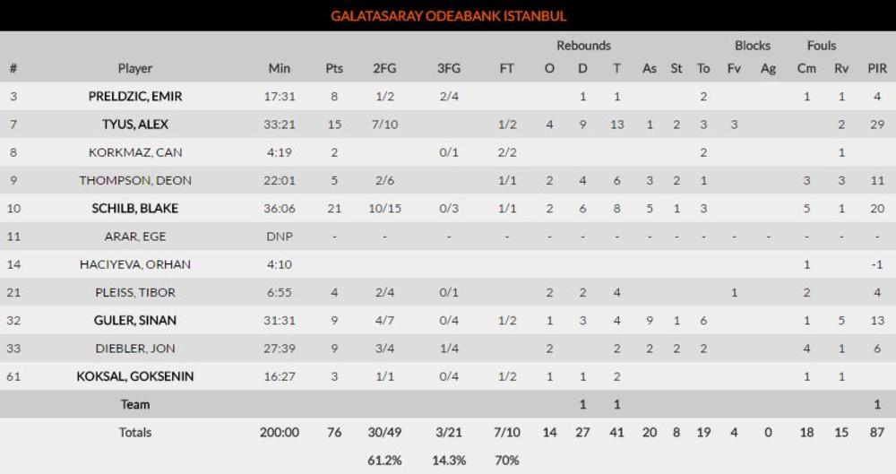 U derbiju Istanbula, Efes je slavio na gostujućem terenu protiv Galate rezultatom 86:76.