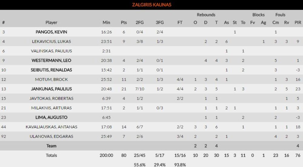 U litvanskoj ekipi 21 poen je upisao Paulijus Jankunas, dok je Leo Vesterman meč završio sa 4 poena.