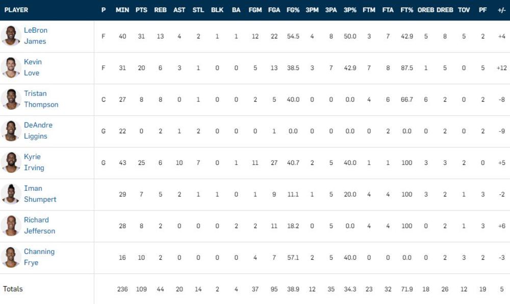 Aktuelni šampion je kod kuće savladao "Ratnike" sa 109:108, zahvaljujući Kajriju Irvingu koji je ubacio poslednje poene na meču na 3,5 sekundi do kraja. Time je branilac titule upisao 22 trijumf, dok su Kari, Durent i Tompson doživeli peti poraz.