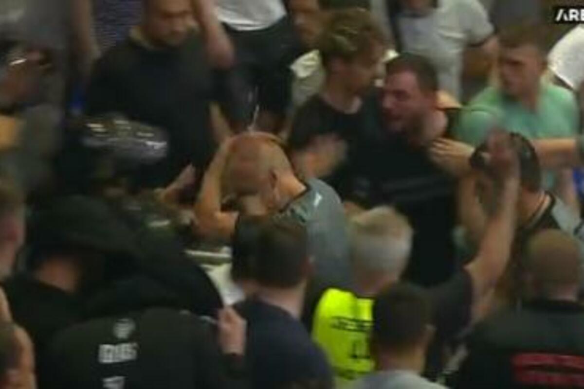 Pri povlačenju sudija, nadomak tunela došlo je do kratke gužve. Na snimku deluje da je sudija Boltauzera dobio udarac.