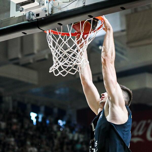24. minut - Holins je promašio dva bacanja, ali mu se lopta vratila u ruke, pa je uspeo da ubaci loptu u koš i ipak dođe do dva poena.