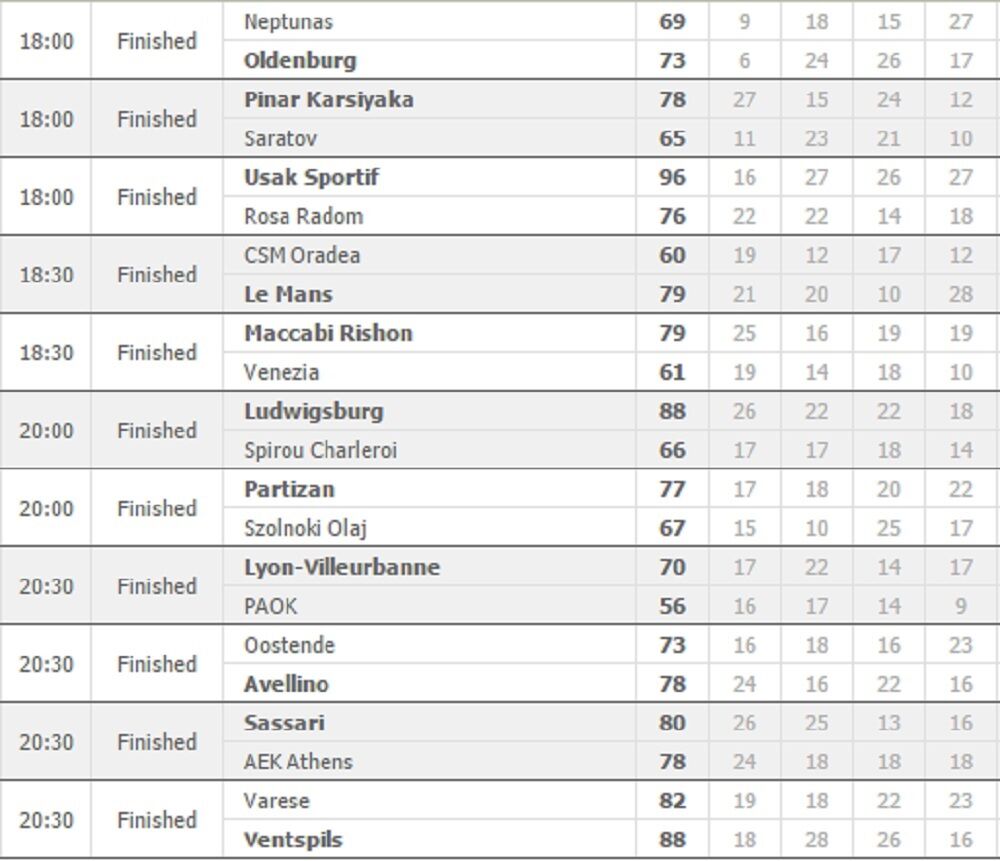 Ludvigsburg je sa 88:66 slavio nad Šarloom, dok je Sasari slavio nad AEK-om iz Atine sa 80:78 i na taj način ostavio Partizan usamljen na trećem mestu grupe E!