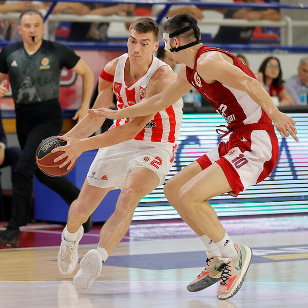 2. minut - jaka odbrana Zvezde od starta i vezani poeni Kuzmića - 0:4.