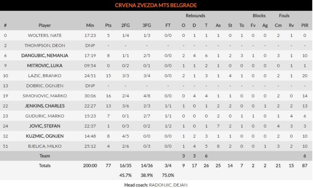 Delovalo je kao da Radonjić ne mora ništa da im kaže, potpuno smireno, uz sjajnu odbranu, Zvezdini košarkaši su gospodarili svakim delom terena, dok sa druge strane, Žalgirisu ništa nije išlo od ruke.