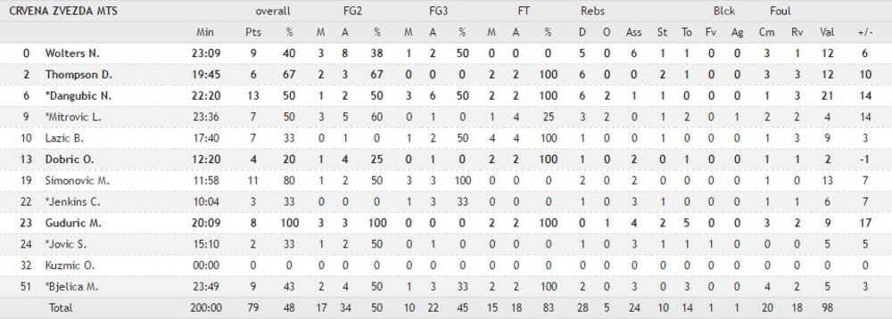 Crvena zvezda - Krka 79:62