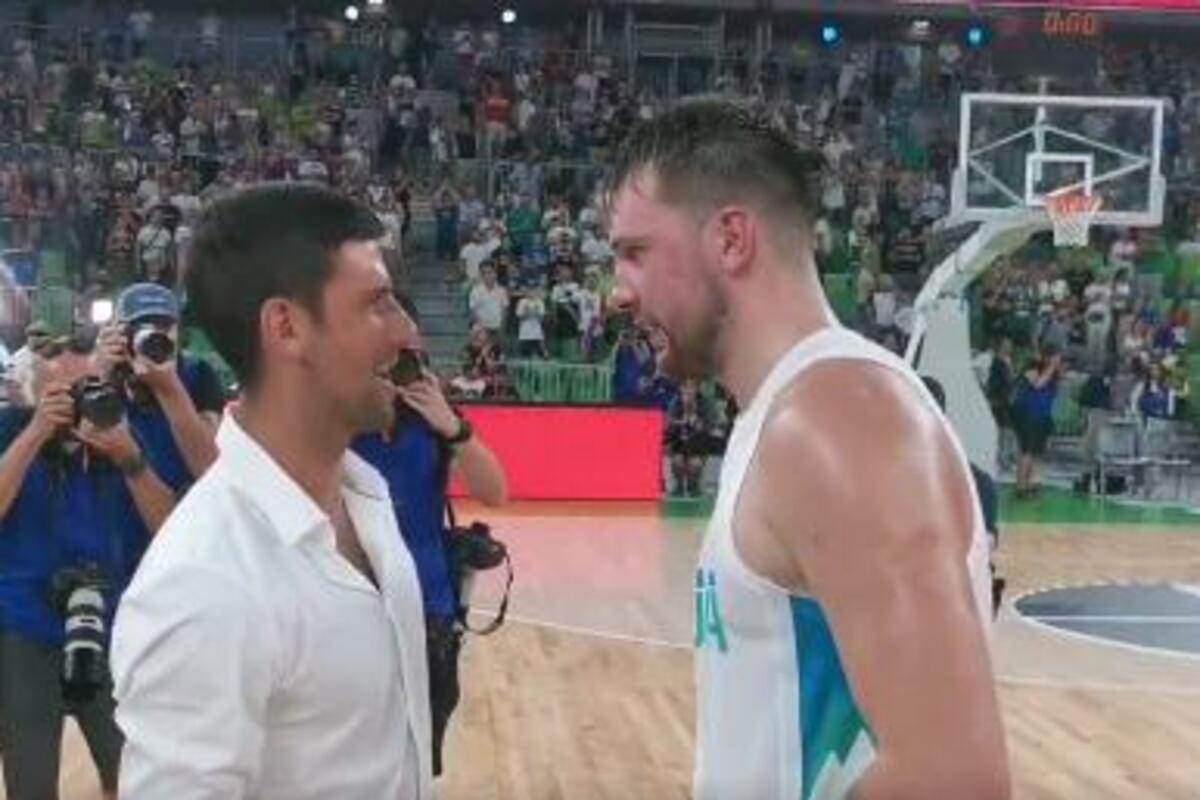 Nakon završetka susreta Novak je pozdravio košarkaše, a posebno je proćaskao sa Dončićem koji je očigledno i impresioniran njime.