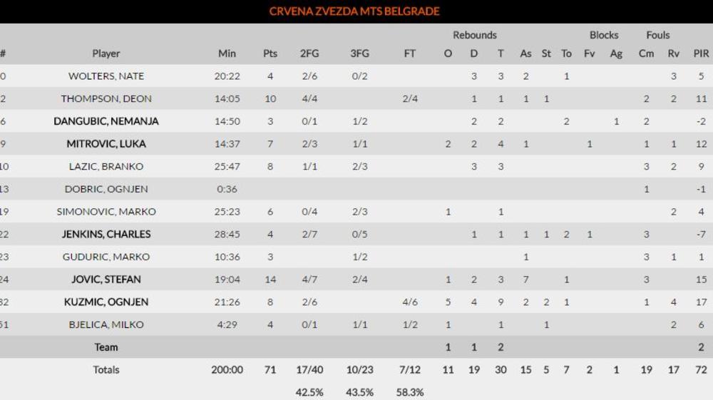 Ipak, Crvena zveda je na krilima Diona Tomspona i Stefana Jović uspela da se vrati u meč i da na poluvreme ode sa samo poenom zaostatka.