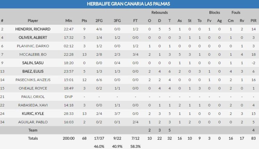 Što se tiče utakmice iz grupe E, Fuenlabrada u poslednjem kolu gostuje Gran Kanariji koja ima pobedu više, ali je savladala rivala na svom parketu sa deset poena razlike. Ekipu je do druge pobede u Top 16 fazi nosio Pako Krus sa 16 poena, 13 je dodao Marko Popović, dok je osam ubacio Ivan Paunić, uz po skok i asistenciju.
