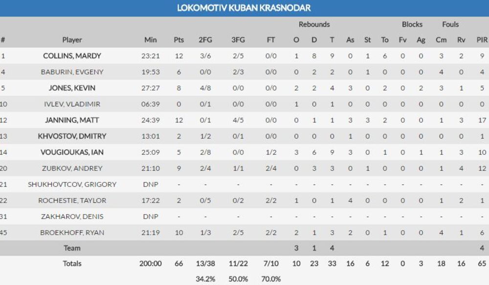 Kod domaćeg tima po 12 poena postigli su Mardi Kolins i Met Džening.