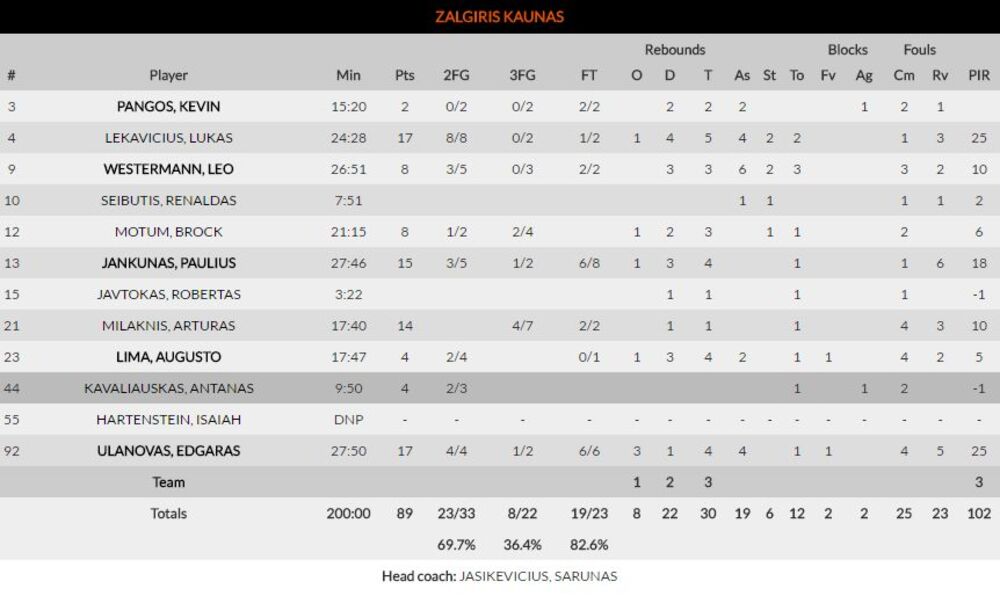 Najefikasniji u pobedničkom timu bili su Edgaras Ulanovas i Lukas Lekavičijus sa 17 poena, dok je Leo Vesterman ubacio osam.