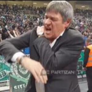 Nije želeo trener Panatinaikosa da odgovara na pitanja novinara. Ispoštovao je obaveze Evrolige, pojavio se, dao kratku izjavu i komentar utakmice i odmah je otišao.