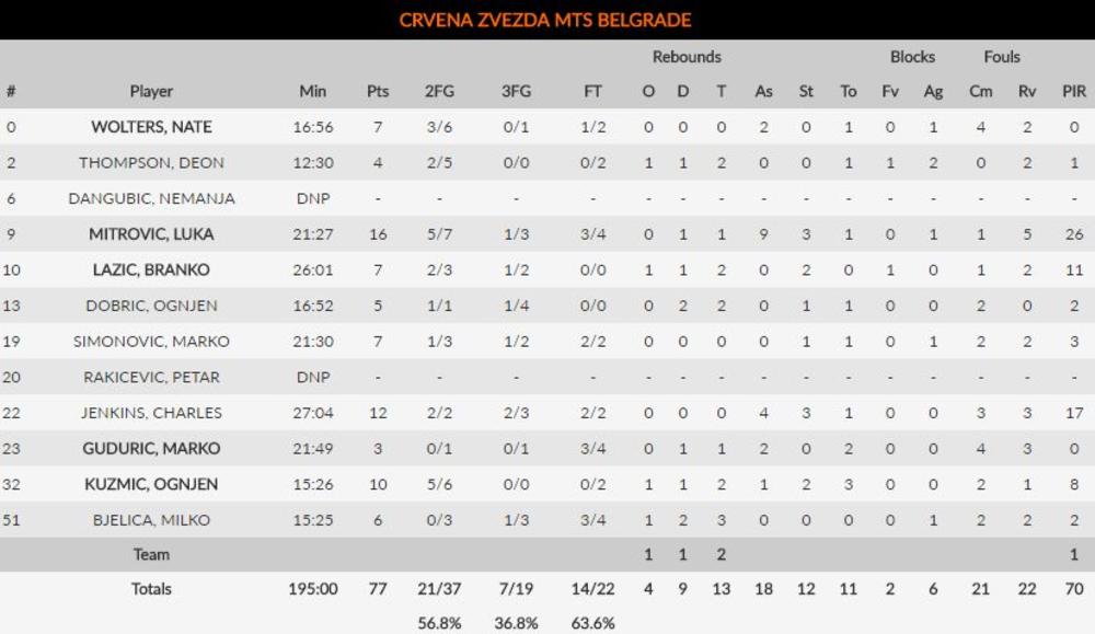 U taboru srpskog šampiona istakao se Luka Mitrović sa 16 poena.