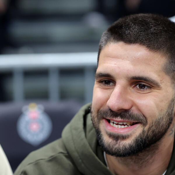 Na oduševljenje većinskih navijača u "Štark areni", napadač reprezentacije Srbije i veliki Partizanovac Aleksandar Mitrović je našao svoje mesto u hali.