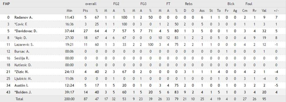 Najefikasniji u pobedničkoj ekipi bio je Đorđe Davidovac sa 27 poena.