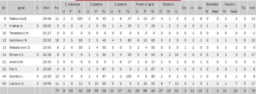 Fenomenalnu pružio je Novica Veličković sa 19 poena, ali je sjajan bio i Uroš Luković sa 11 poena i 13 skokova.