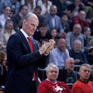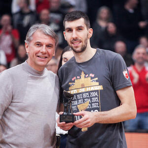 Čim je spiker najavio da će predsednik KSS Predrag Danilović predati crveno-belima pehar, momentalno su sa tribina krenuli zvižduci i bučno negodovanje legendi domaće košarke.