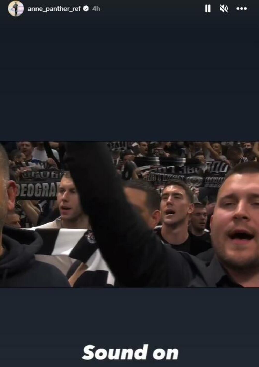 En Panter se dan kasnije i sama oglasila na Instagramu, i to tako što je objavila seriju "storija" na kojima očigledno hvali atmosferu koju je u areni napravilo 20,000 navijača Partizana.