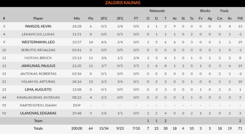 Pobedu litvanskoj ekipi doneo je Leo Vesterman sa 14 poena, dok je Arturas Milaknis ubacio 13.