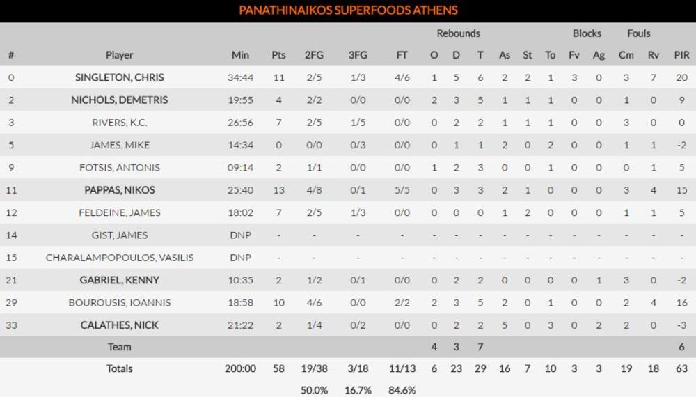 Sa druge strane, jedini vredan pomena je Nikos Papas koji je ubacio 13 poena.