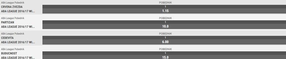 Kvota da će klub sa Malog Kalemegdana odbraniti naslov prvaka ABA lige je svega 1.15.