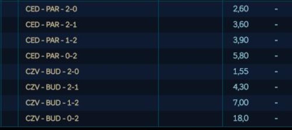 Kvota da će crveno-beli pobediti Budućnost rezultatom 2:0 je svega 1.55, a da će hrvatski tim istim rezultatom pobediti Partizan 2.60.