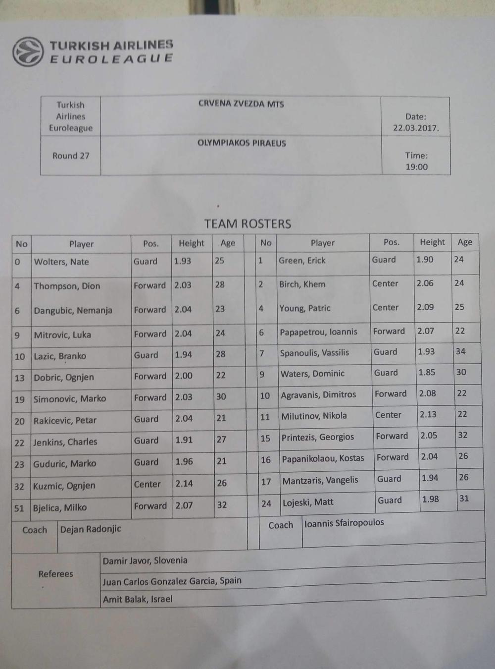 Naime, u protokolu za meč se nalaze i Vasilis Spanuli i Met Lodžeski!