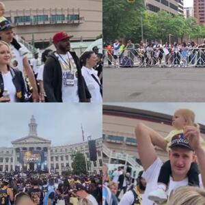Nikola Jokić i saigrači iz Denvera uživaju u pobedničkoj paradi u otvorenom autobusu kroz ulice grada.