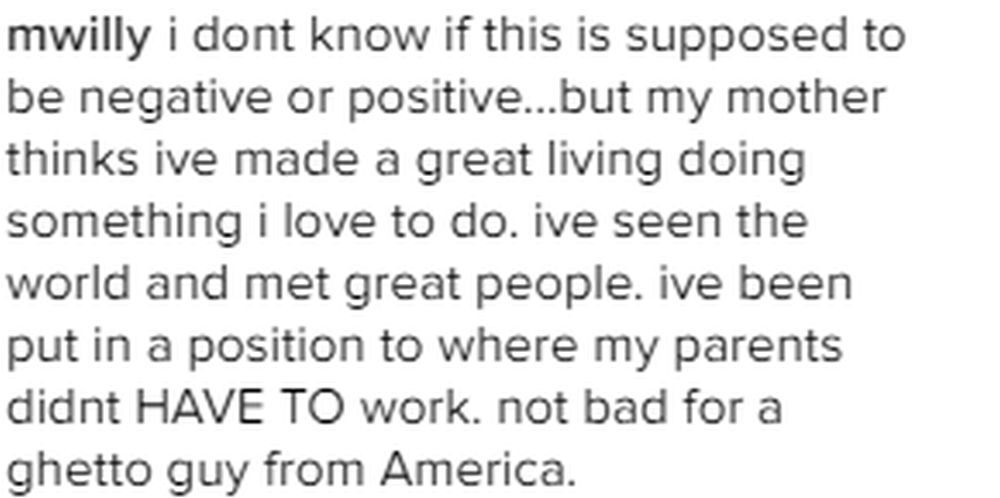 Markusu Vilijamsu nije bilo najjasnije da li je tekst pozitivan ili negativan, ali je zadovoljan onim što je postigao, jer je kako je naveo radio ono što voli i iz srca.