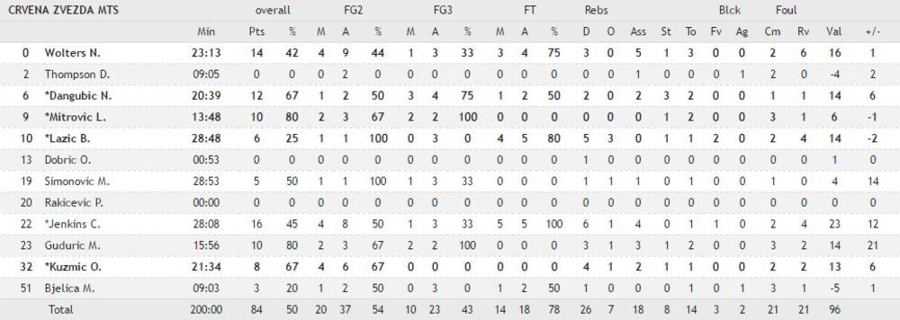 Zvezdu je do pobede vodio Čarls Dženkins sa 16 poena, dok je Nejt Volters ubacio 14.