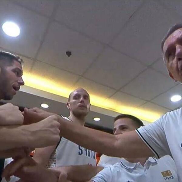 Izabranici Svetislava Pešića okupili su se posle meča u svlačionici Srbije i u njoj kratko proslavili uspeh, jer je popularni "Kari" tražio da se sve brzo smiri i da se igrači odmore, jer posao nije gotovo.