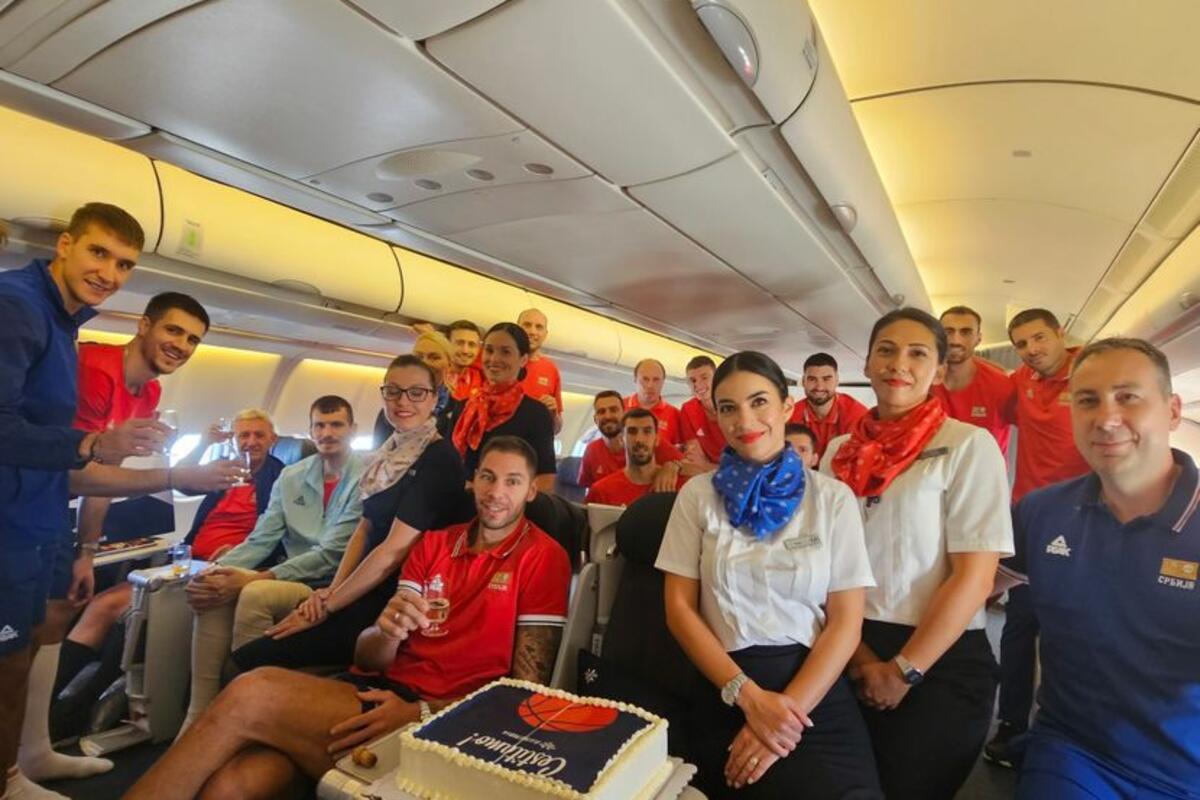 A objavljena je i prelepa fotografija iz aviona. KSS je podelio sliku na kojoj se vidi kako se kompanija "Er Srbija" potrudila da ugosti vicešampione sveta na putu kući.