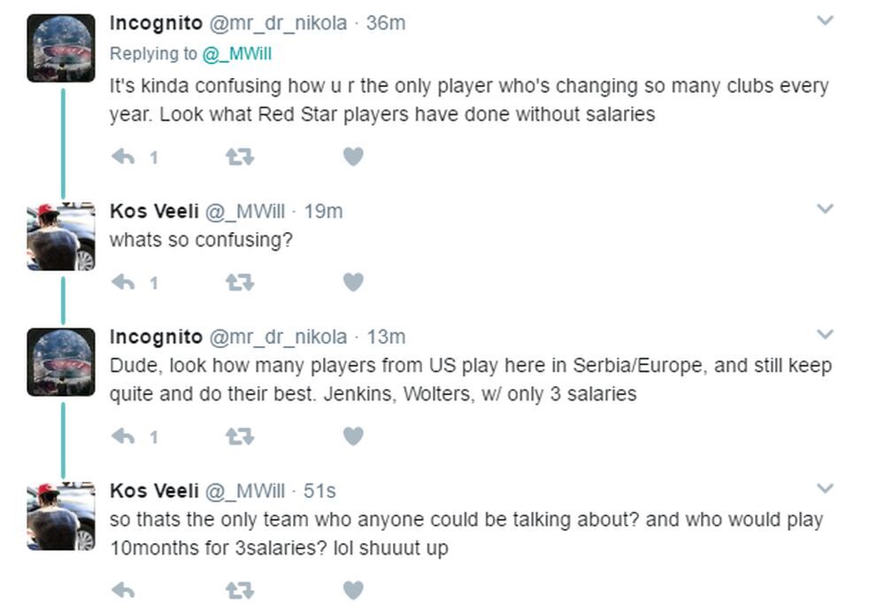Zato je upao i u raspravu sa jednim od navijača koji mu je rekao da je čudno da to iznosi s obzirom da je jedini igrač koji menja mnogo timova tokom sezone i naveo primere Dženkinsa i Voltersa koji ćute i rade, iako su primili samo tri plate.