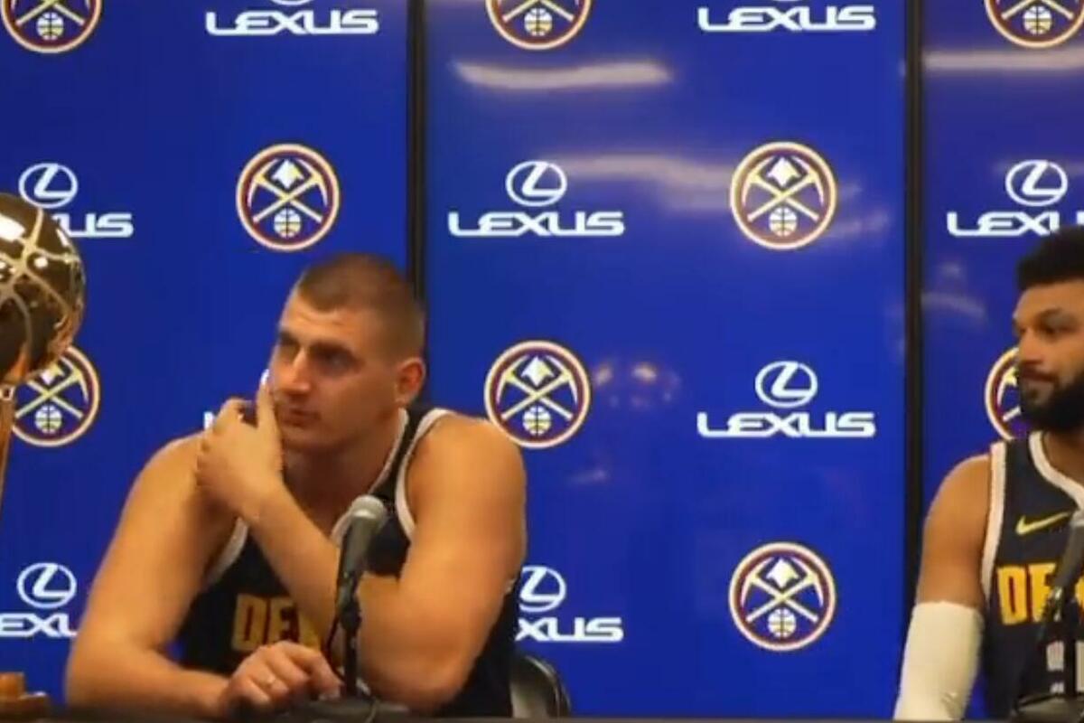 Tokom konferencije je na stolu stajao šampionski pehar, a Jokić se našalio da mu je rečeno: "da ne sme da ga dira".