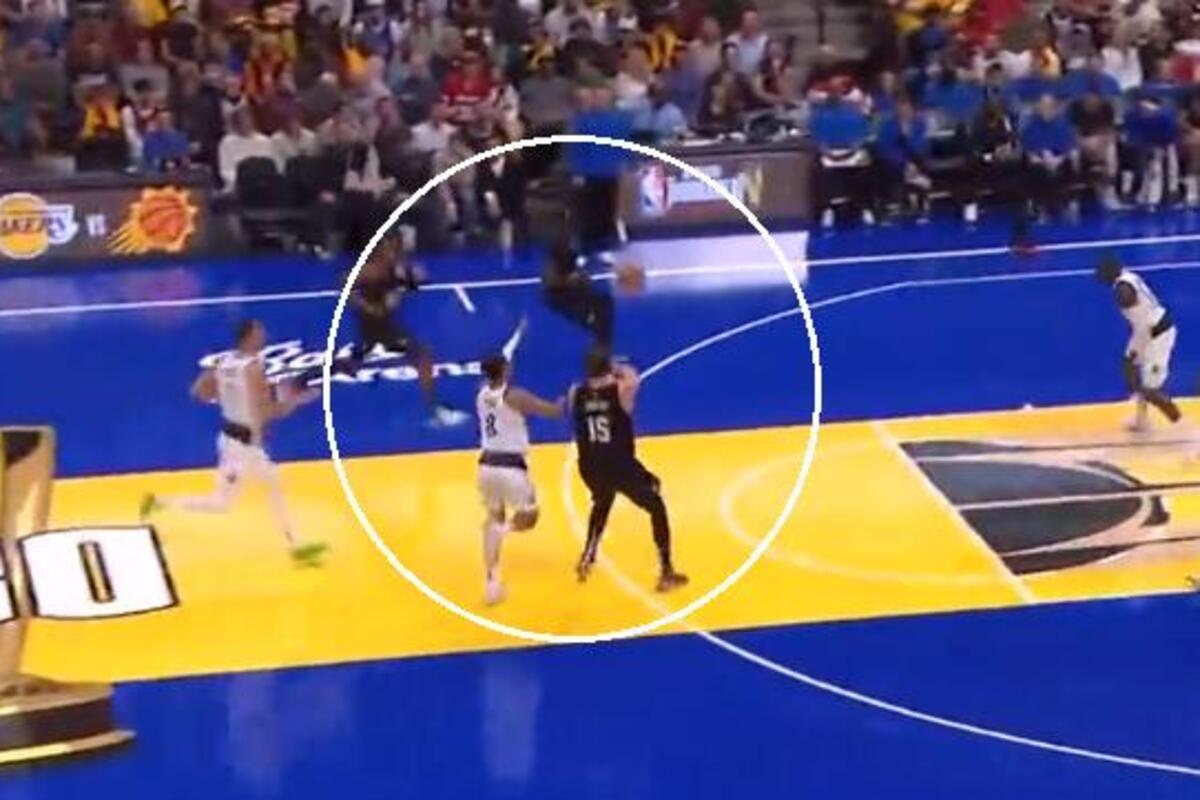 U jednom kontranapadu, srspki centar je poslao loptu ulevo ka Redžiju Džeksonu, ali je presekao drugi saigrač, Pejton Votson, pa nastavio u trku ka košu i efektno zakucao.