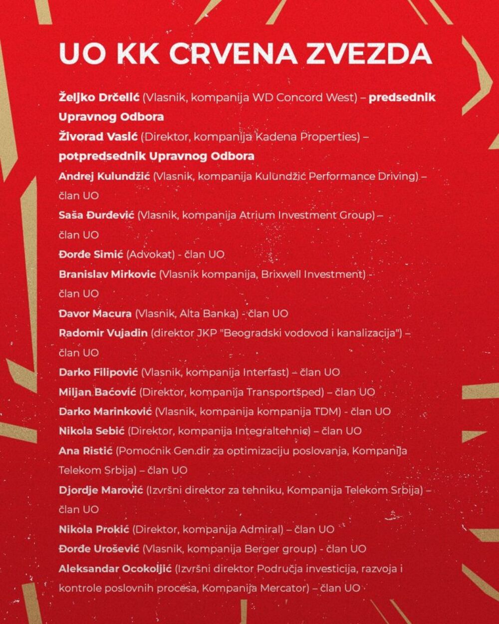 Na prvoj sednici kolegijuma potvrđen je i sastav novog Upravnog odbora koji će brojati 17 članova, a koji čine privrednici i veliki Zvezdaši: