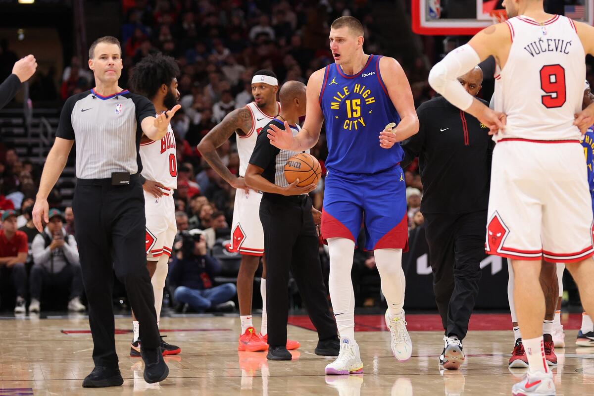 Nikola Jokić isključen je u finišu prvog poluvremena u pobedi Denver Nagetsa u Čikagu protiv Bulsa.