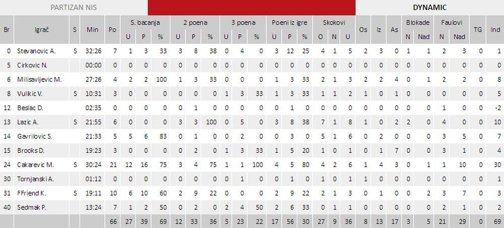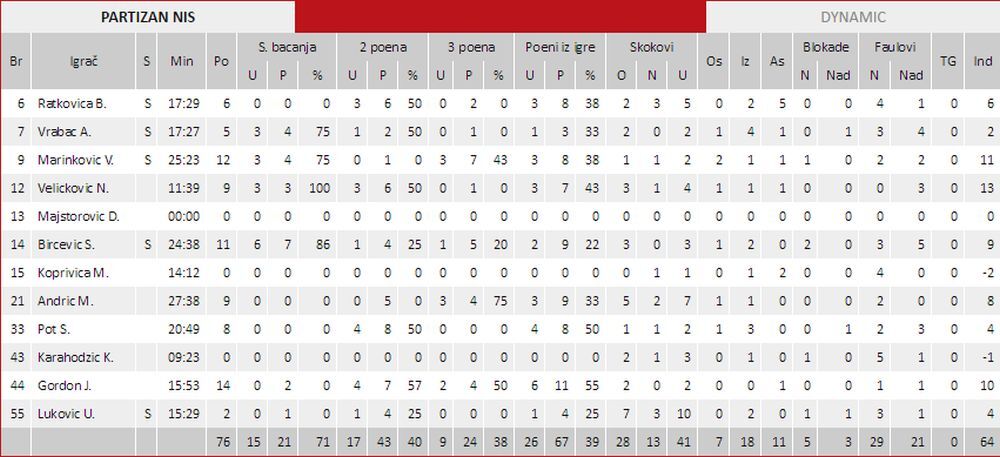 Partizan - Dinamik 76:66
