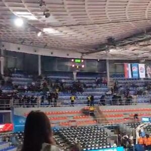 Tribina dvorane "Čair" su pune! Sa jedne strane nalaze se Grobari, a sa druge Delije.