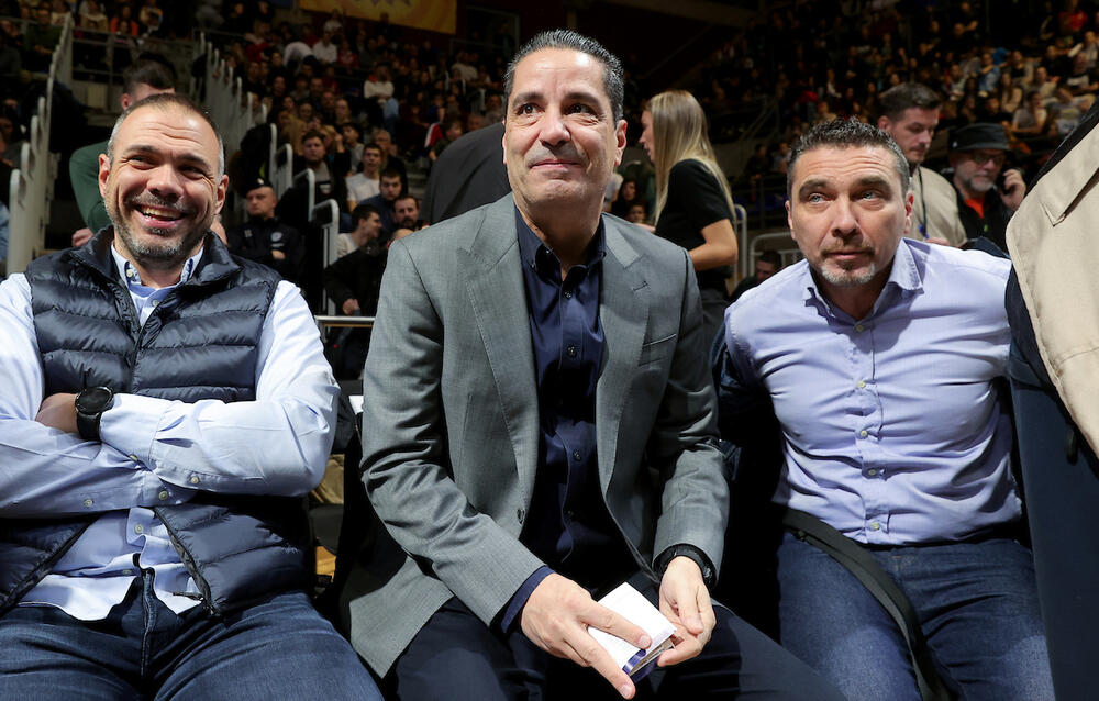 Na utakmici se nalaze i trener Crvene zvezde Janis Sferopulos i novopečeni košarkaš crveno-belih Trej Tompkins.