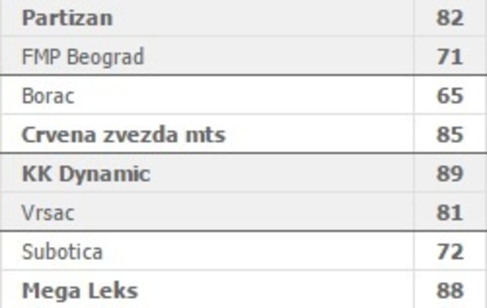 U druge dve utakmice dva interesantna rezultata. Mega Leks je sa 88:72 slavio nad Spartakom u Subotici, dok je Dinamik uspeo da dođe do trećeg trijumfa.