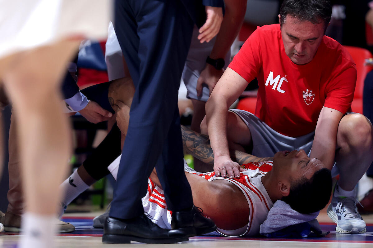 Sredinom drugog poluvremena plejmejker Zvezde Jago Dos Santos doživeo je neugodnu povredu zbog koje je morao van parketa.