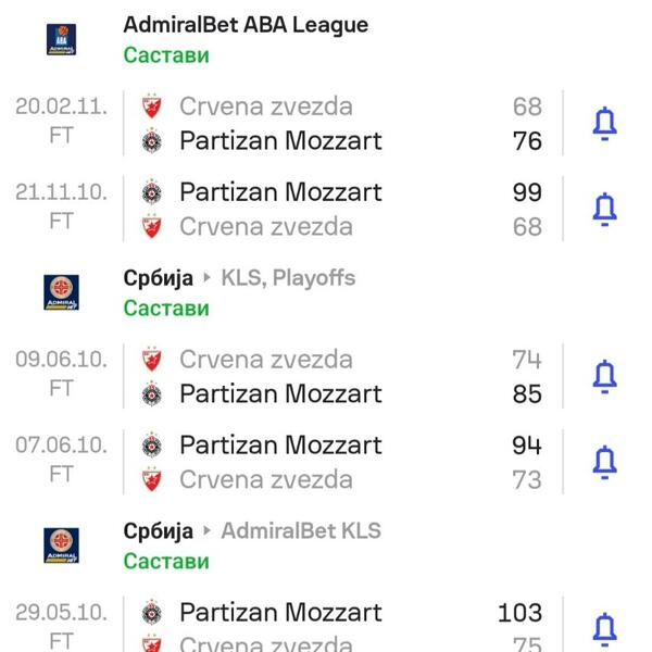 Prethodno, Zvezda je počistila Partizan sa 3:0 u finalu ABA lige, kao i u Kupu Radivoja Koraća u Nišu, odnosno u regularnom toku regionalnog takmičenja i Evrolige.