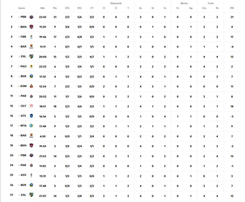 Statistika Nemanje Nedovićafoto: Printscreen/Euroleague