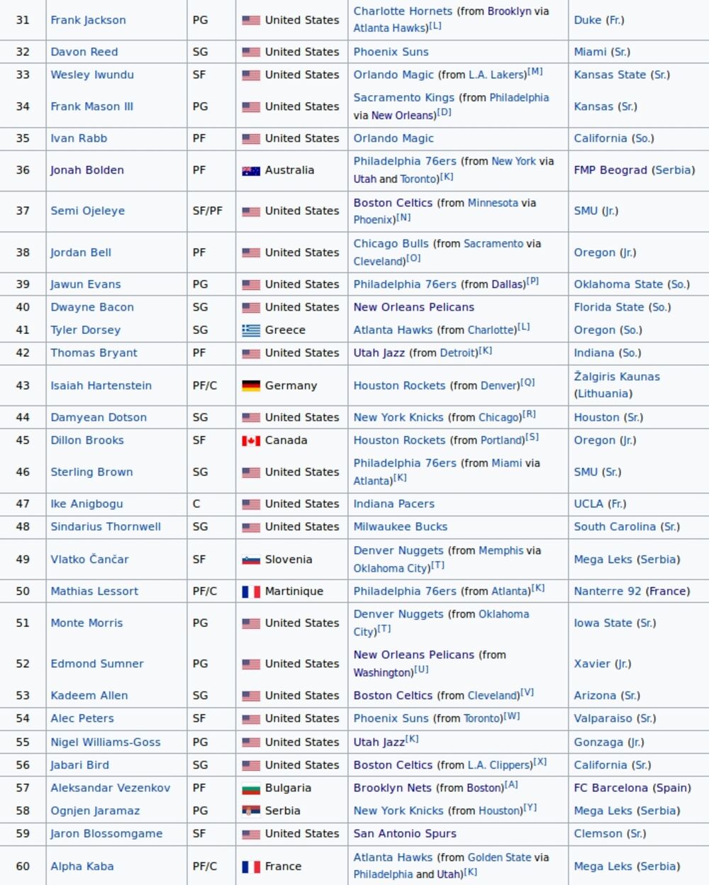 Tu su još Matijas Lesor, Francuz poreklom sa Martinika, igrač Nantera, kojeg su sa 50. pozicije birali Siksersi, kao i bugarski košarkaš Aleksandar Vezenkov iz Barselone, igrač koji je kačket namestio pred kraj drafta kada su ga sa 57. mesta uzeli Netsi.