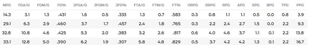 Inače je studirao na Nju Meksiko Stejtu, a prošle sezone je postigao 16,7 poena po meču uz 4,2 asistencije i isto toliko skokova. A evo i kompletne njegove statistike tokom 4 godine studija.