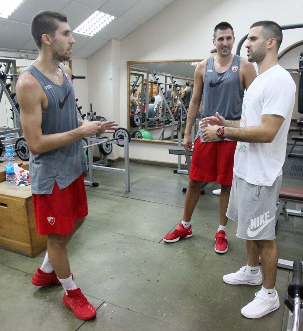 Stručni štab je na današnjem treningu dobio i pojačanje, tim menadžera Nebojšu Ilića. Još jedan član reprezentacije Srbije takođe se našao na treningu crveno-belih i, kao i uvek, u svom stilu podigao atmosferu. Poneku šalu i osmehe ubrzo su zamenila ozbiljna lica. Trener Crvene zvezde i novi kapiten odvojili su se na stranu i obavili duži razgovor o predstojećim izazovima.
