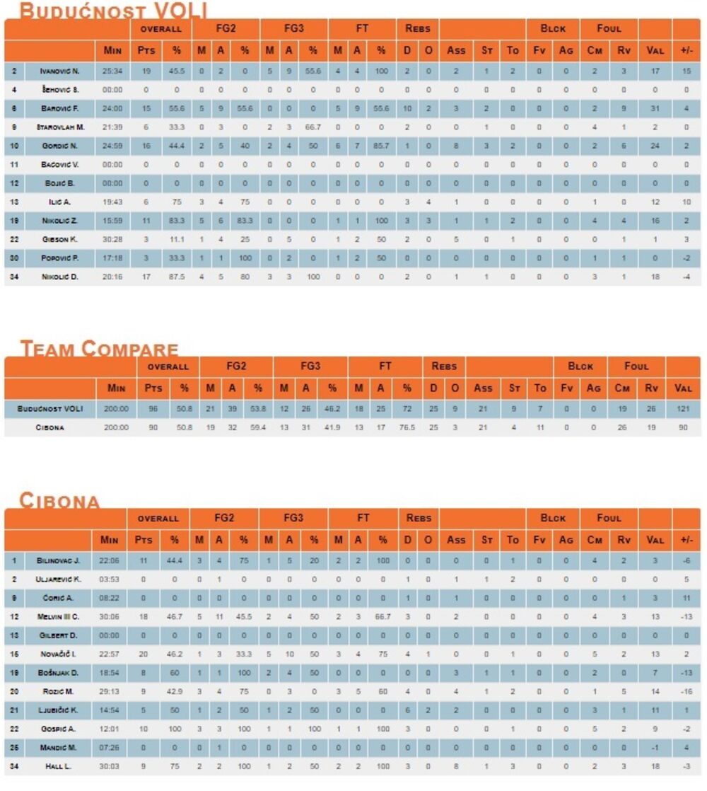 Košarkaški klub Budućnost plasirao se u polufinale Superkupa Jadranske lige, pošto je u Baru pobedio Cibonu sa 96:90. Budućnost je predvodio Nikola Ivanović sa 19 poena, 17 je postigao Danilo Nikolić, 16 Nemanja Gordić, a 15 Filip Barović. Najefikasniji u Ciboni bio je Ivan Novačić sa 20 poena.