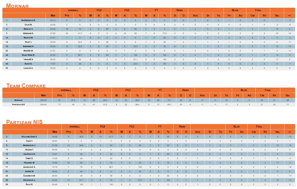 Najefikasniji u pobedničkom timu bili su Derek Nidhem sa 22 poena, Strahinja Mićović sa 18 i Nemanja Vranješ sa 17 poena.